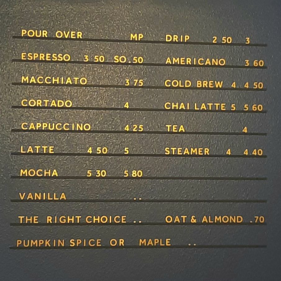 Please take a look at our menu. This is subject to change as the seasons move from one to the other; this is why we have Market Pricing for seasonals and exotics on pour over.